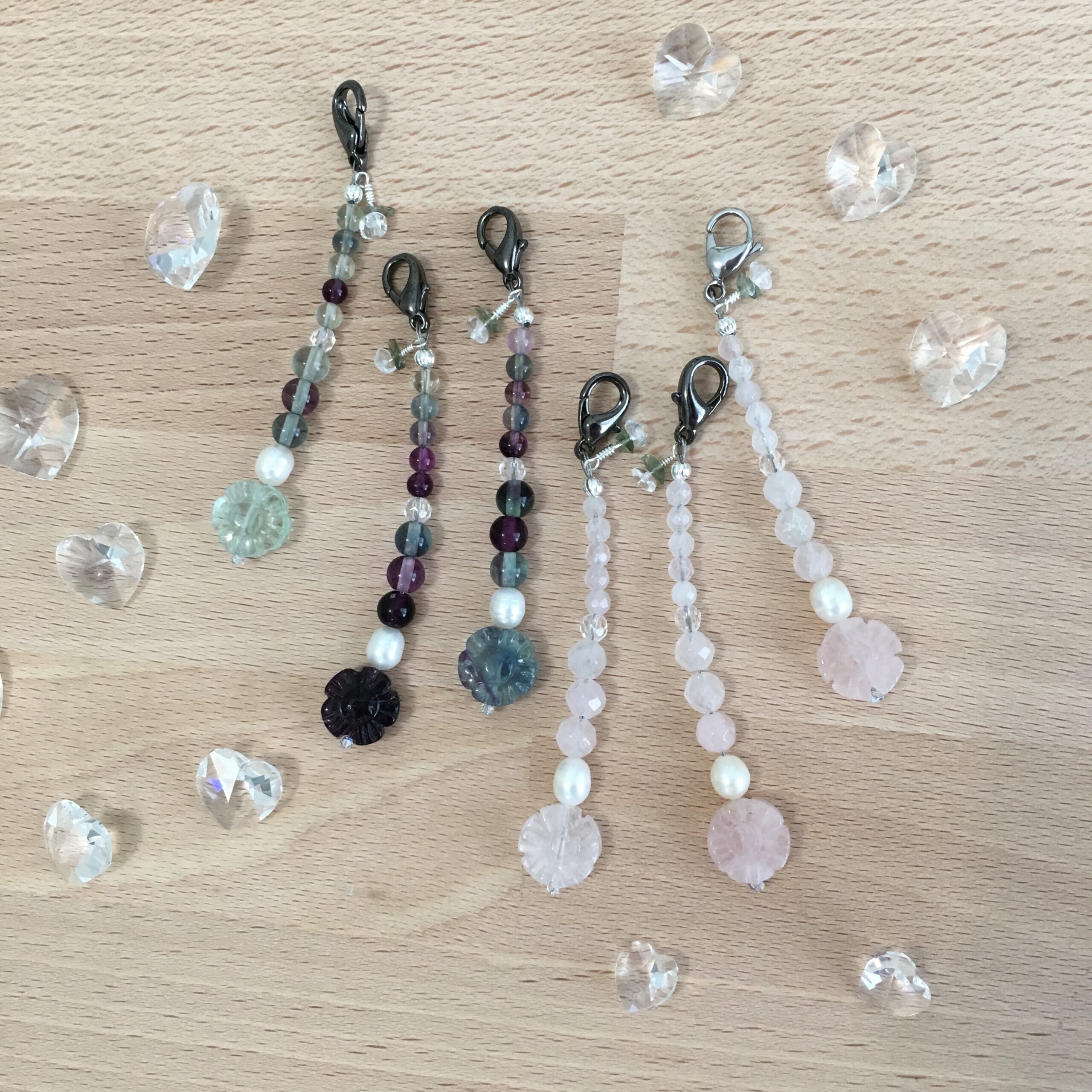 Shop for Rose Quartz charms and keychain malas here.